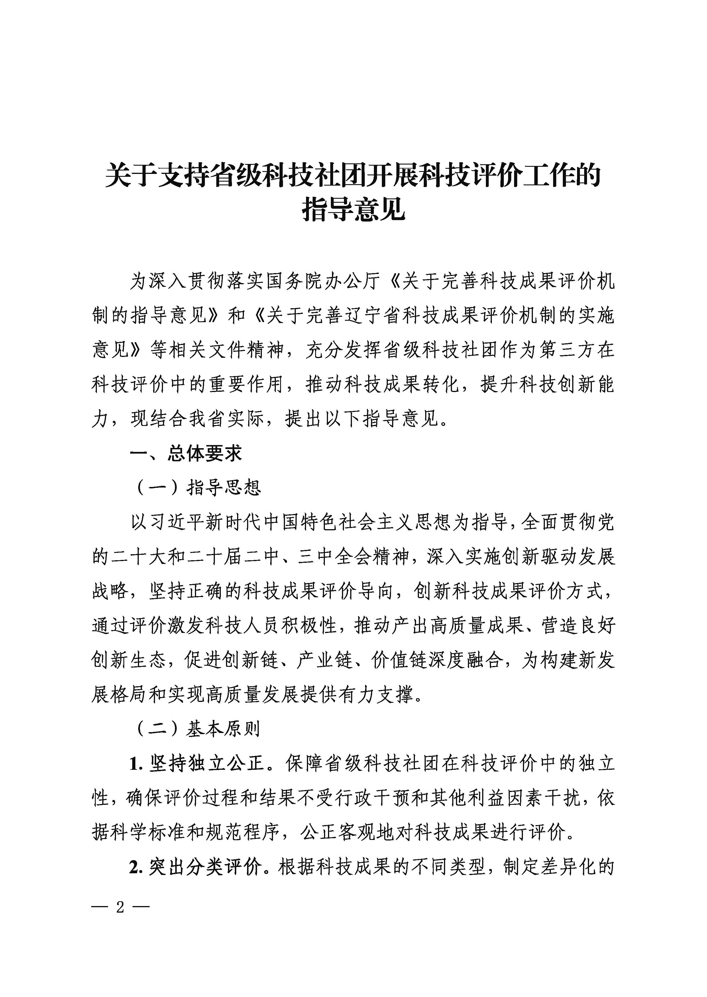 关于支持省级科技社团开展科技评价工作的指导意见的通知