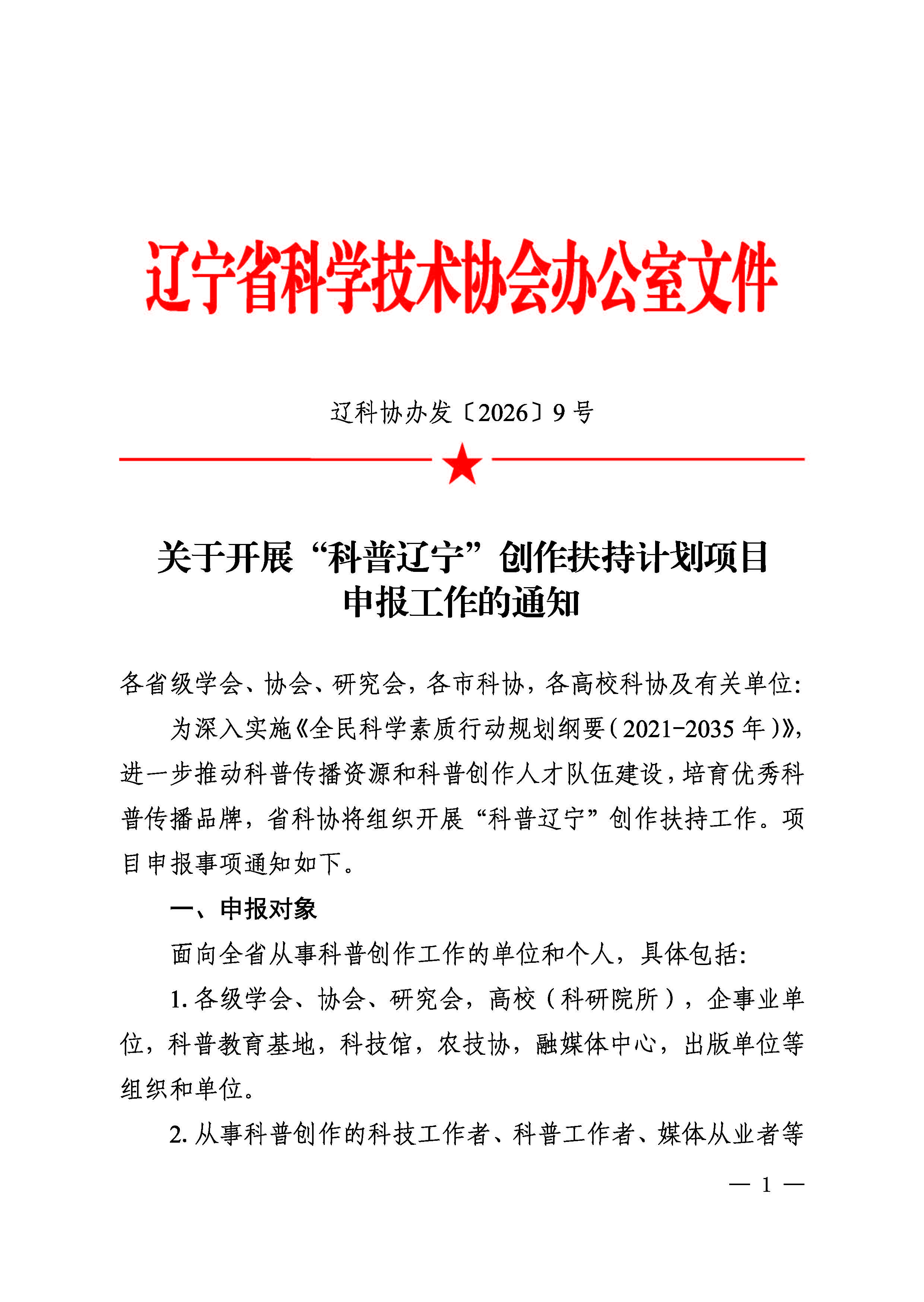 关于开展“科普辽宁”创作扶持计划项目申报工作的通知