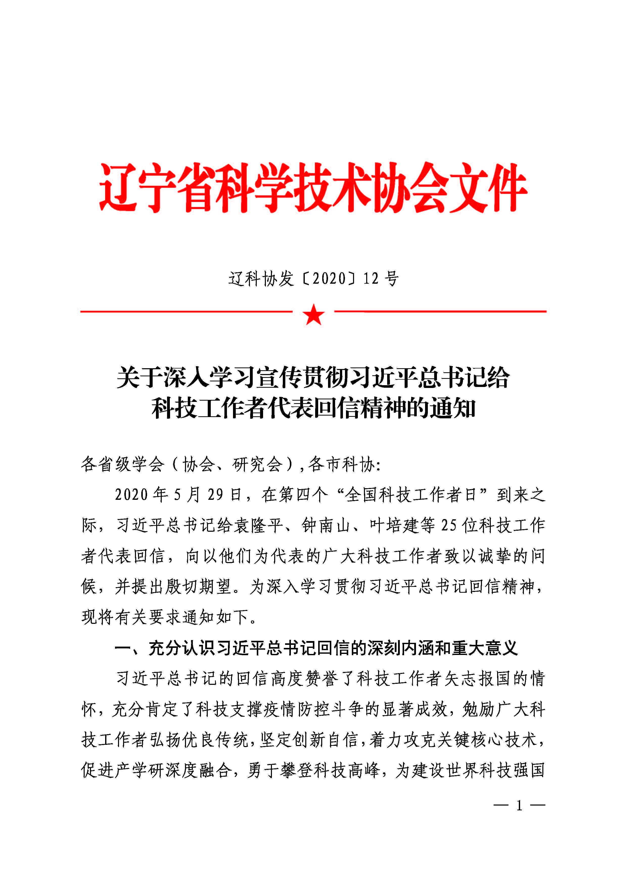 关于深入学习宣传贯彻习近平总书记给科技工作者代表回信精神的通知