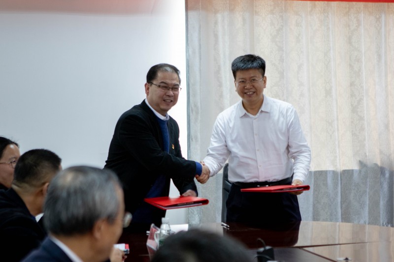 张蕾和匡嘉智分别代表校企签署了共建协议。