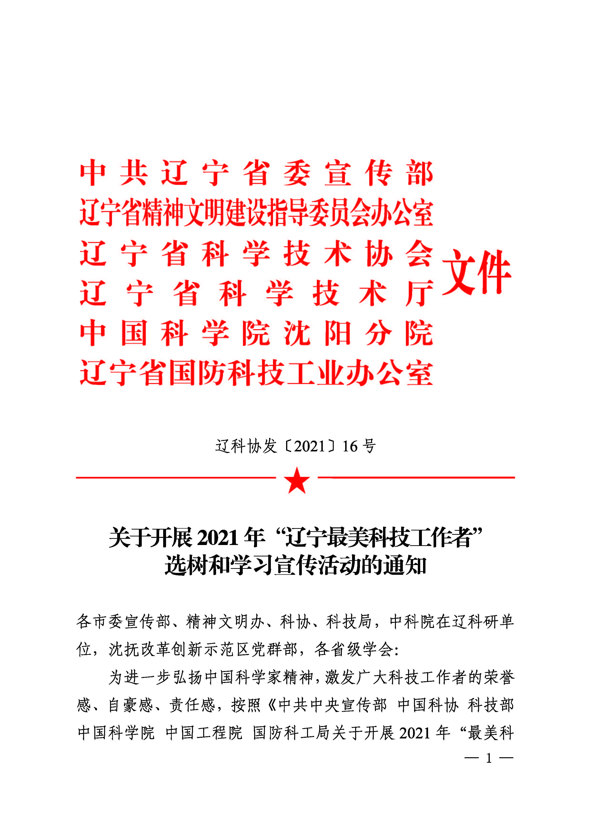 关于开展2021年“辽宁最美科技工作者“选树和学习宣传活动的通知