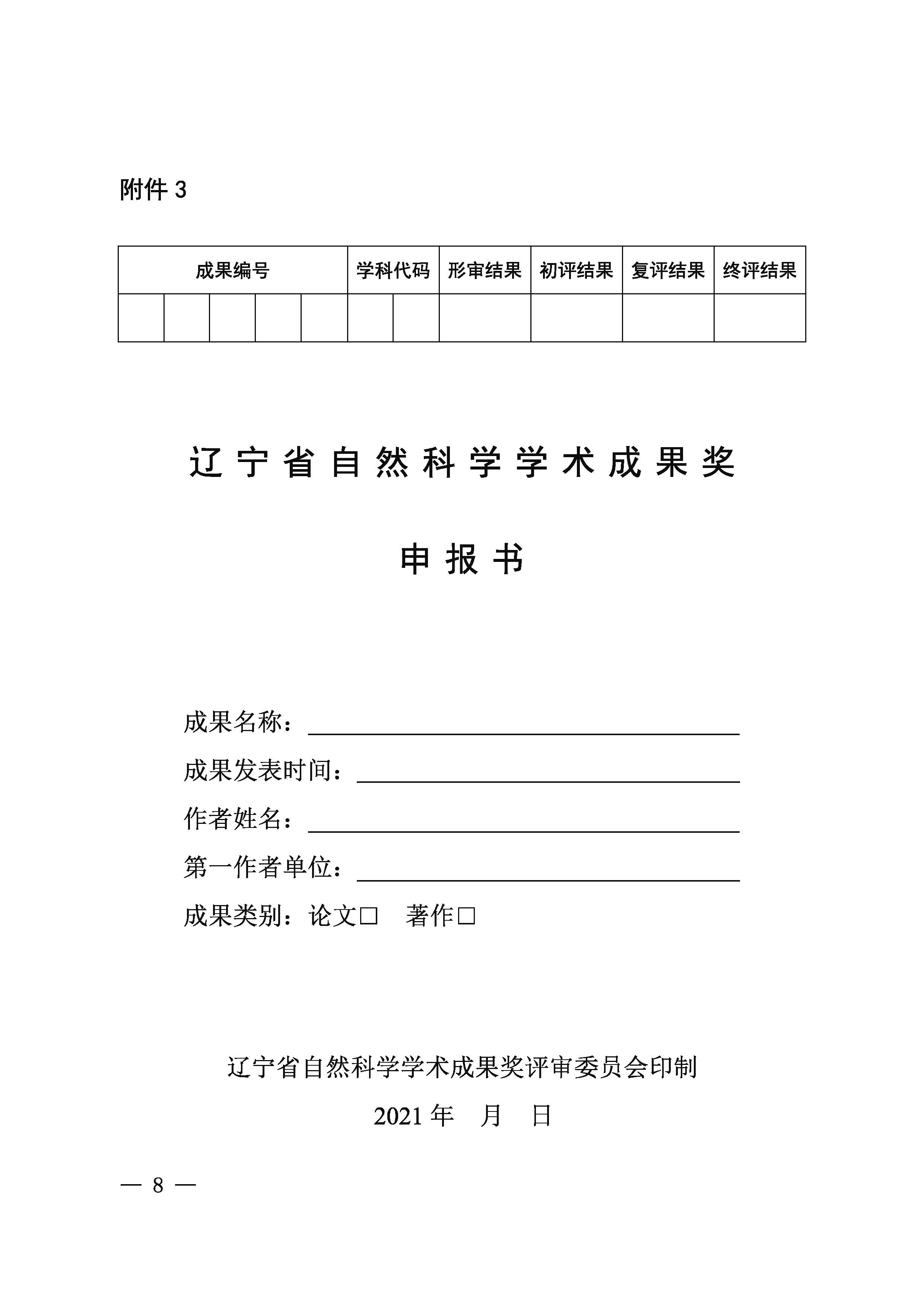 附件3-2021年辽宁省自然科学学术成果奖申报书(点击下载)