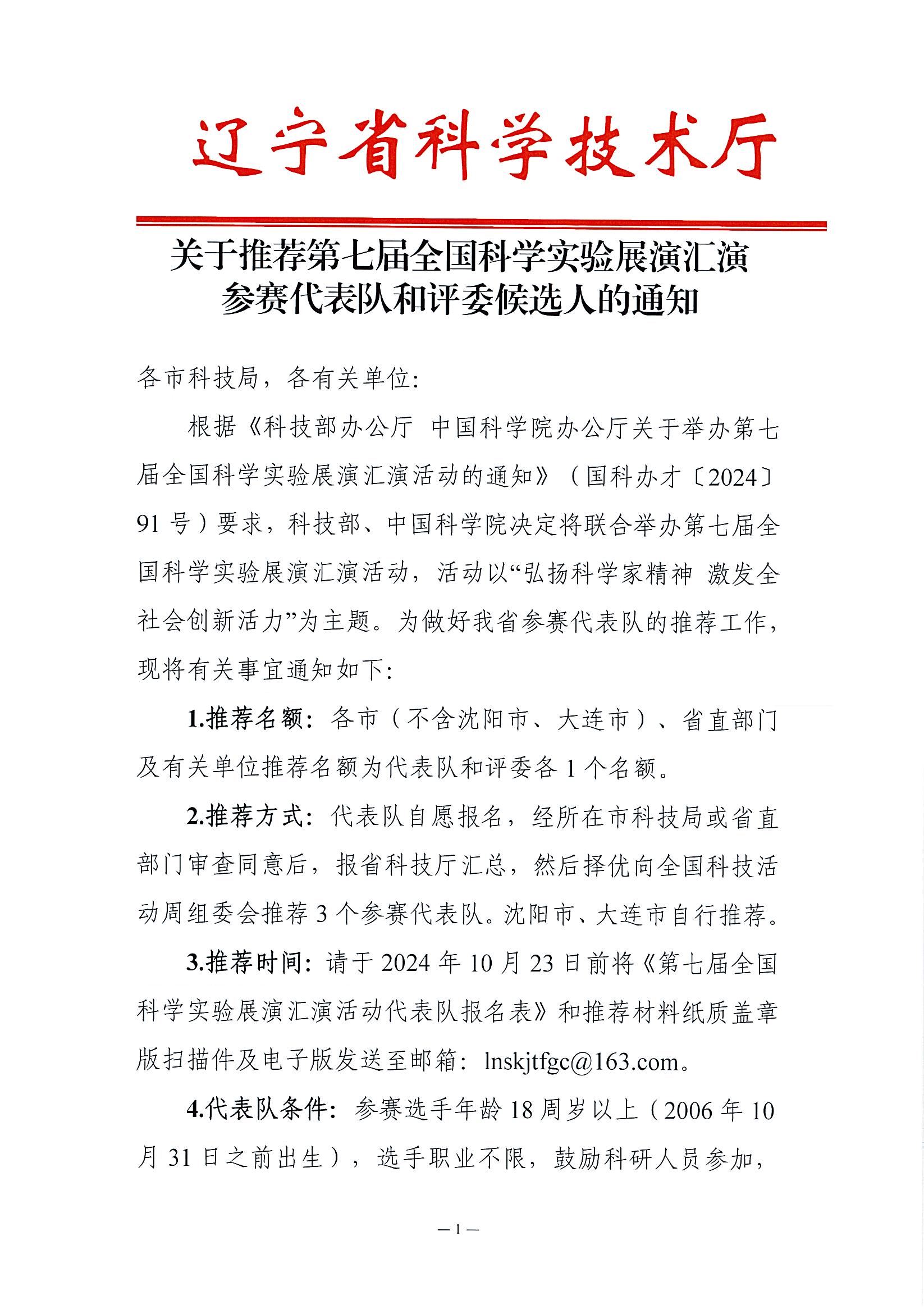 关于推荐第七届全国科学实验展演汇演参赛代表队和评委候选人的通知