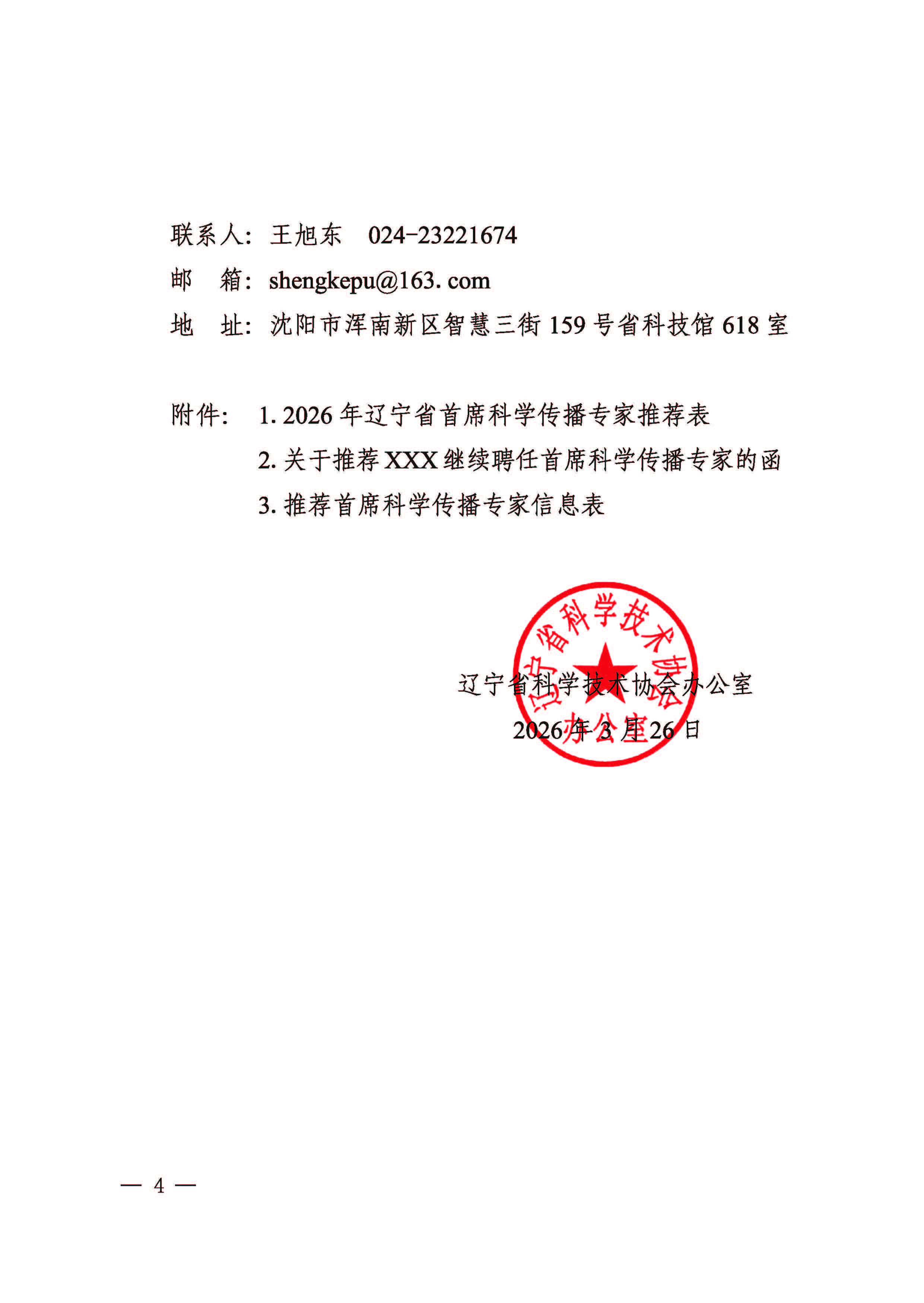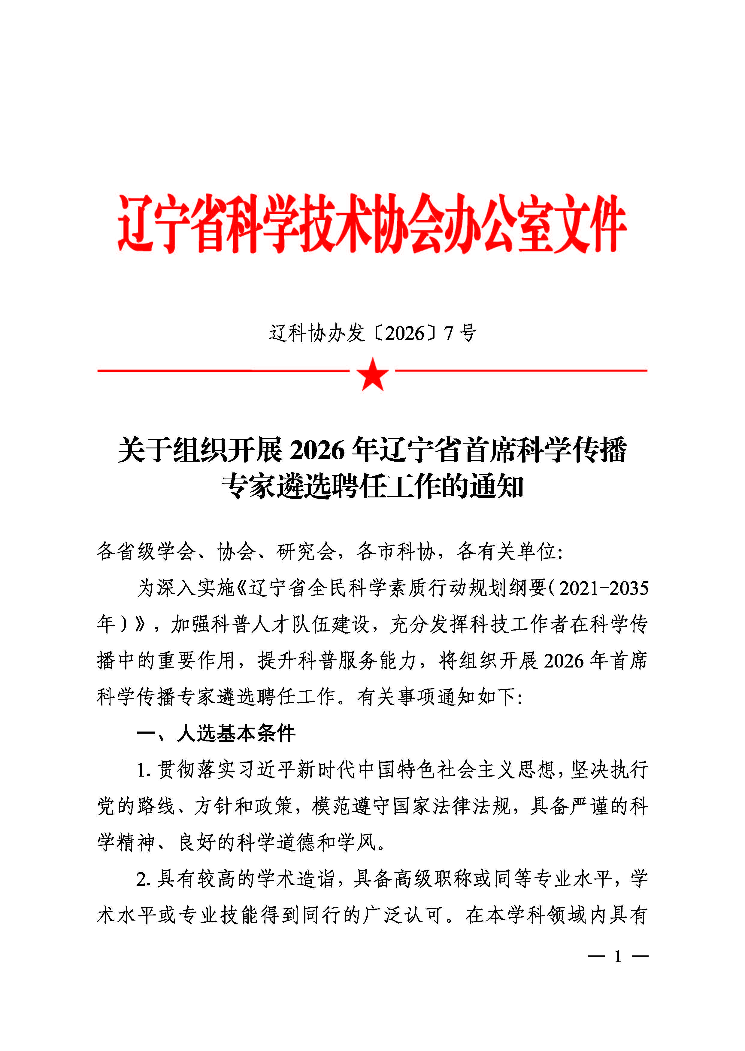 关于组织开展2026年辽宁省首席科学传播专家遴选聘任工作的通知
